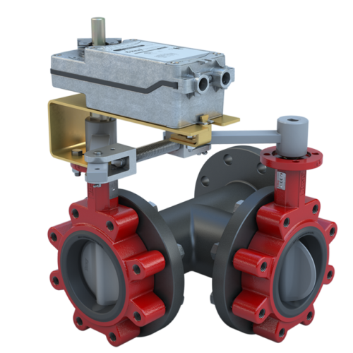 2 inch 3-Way Lugged Butterfly Valve Resilient Seated, ANSI Class 125/150, DI body, NDI Disc, CV 66, | Damper & Valve actuator, 24 Vac/dc, 140 lb-in,modulating, Non-Spring Return