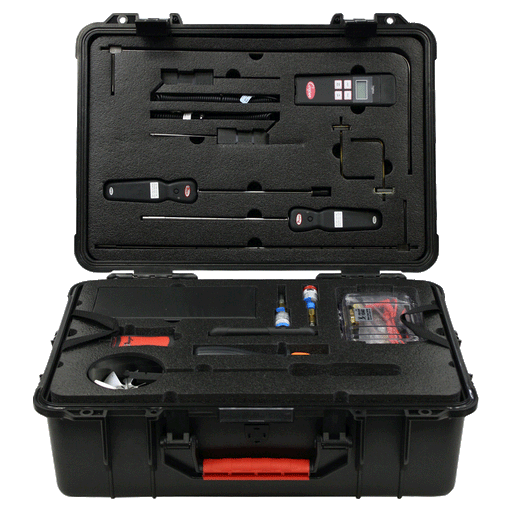 Complete NIST calibrated Test, Adjust and Balance Kit with a hard carrying case.