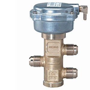 1/2" 3-Way Globe Valve, 3-8 lb Spring Rating, CV 2.5, Flared End, 3.4" Effective Diaphragm Area, 1/8" NPT Air Connecti